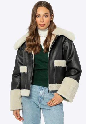 Wittchen Dames Kort Jasje met Imitatiebont Zwart Kunstleer