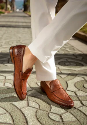 Wittchen Heren Leren Mocassins met Visgraatmotief, Lichtbruin, Natuurlijk Leer