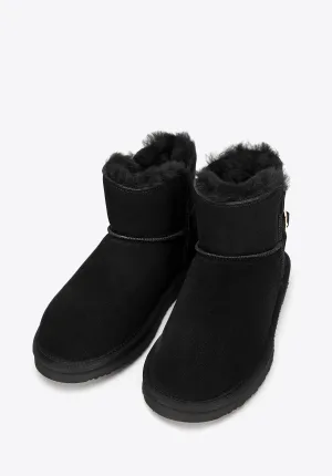 Wittchen Dames Leren Laarzen met Gespen en Schapenvacht, Pruim, Natuurlijk Leer