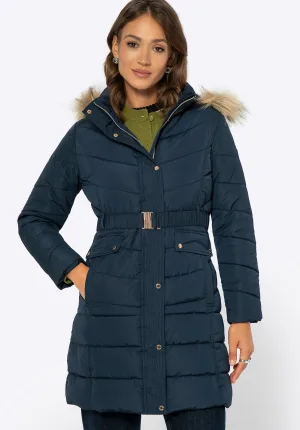 Wittchen dames gewatteerde jas met capuchon, marineblauw polyester