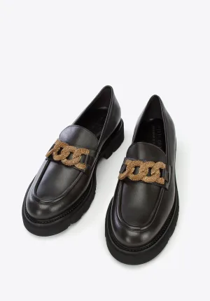 Wittchen Dames Leren Mocassins met Decoratieve Ketting op Platform Zwart