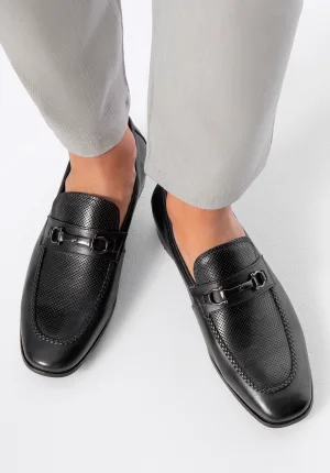 Wittchen Heren Leren Loafers met Gesp op Band Zwart Natuurlijk Leer