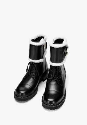 Wittchen Dames Leren Laarzen met Gespen en Schapenvacht Zwart Natuurlijk Leer