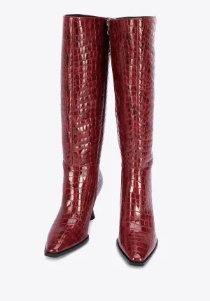 Wittchen Dames lakleren croco hoge hak laarzen, bordeauxrood, natuurlijk leer