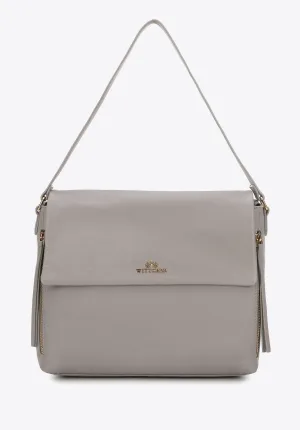 Wittchen Dames Leren Schoudertas met Decoratieve Ritsen, Grijs Natuurlijk Leer