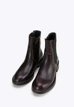 Wittchen Dames Leren Chelsea Boots met Decoratieve Klinknagels Bruin Natuurlijk Leer