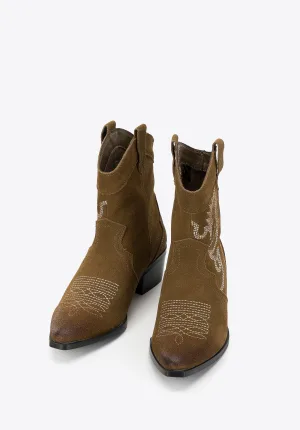 Wittchen Dames Suède Cowboylaarzen met Borduurwerk Korte Groene Suède Leer