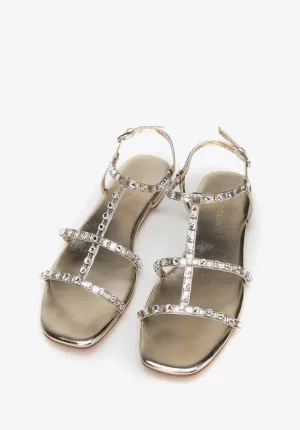 Wittchen Dames Leren Sandalen met Kristallen, Goud, Natuurlijk Leer