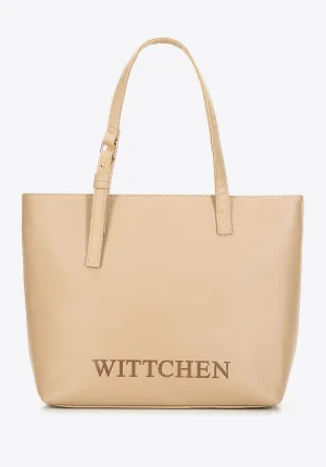 Wittchen Dames shopper met reliëflogo, beige, eco-leer