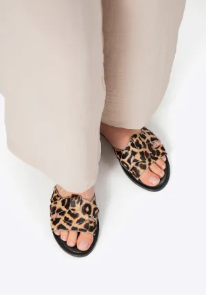 Wittchen Dames Animal Print Leren Slippers Zwart en Bruin Natuurlijk Leer