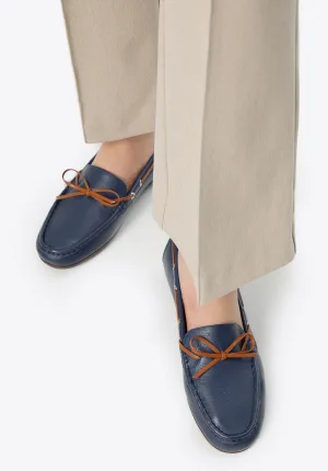 Wittchen Dames Leren Mocassins met Bandje, Marineblauw en Bruin, Natuurlijk Leer
