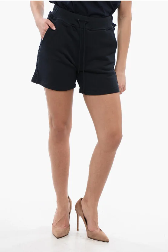 Geborstelde katoenen shorts met geborduurd logo in blauw