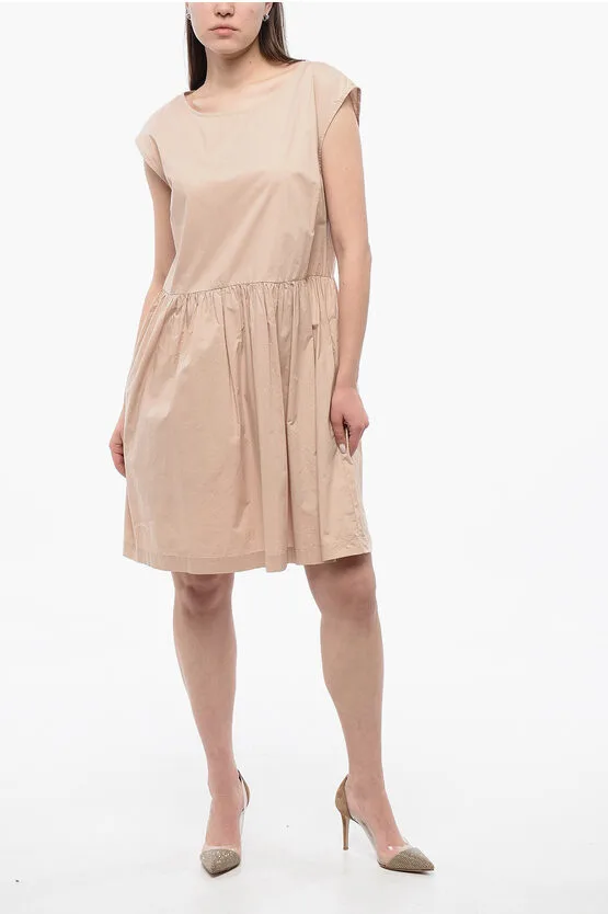 Popeline mouwloos shirt met trekkoordzoom in rood