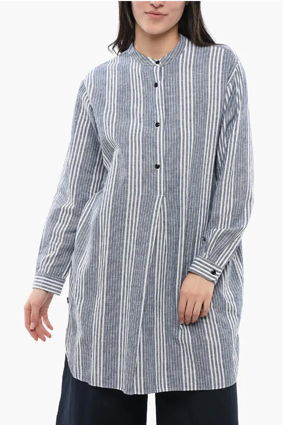 Gestreept overhemd van biologisch katoen met mandarijnkraag in lichtblauw