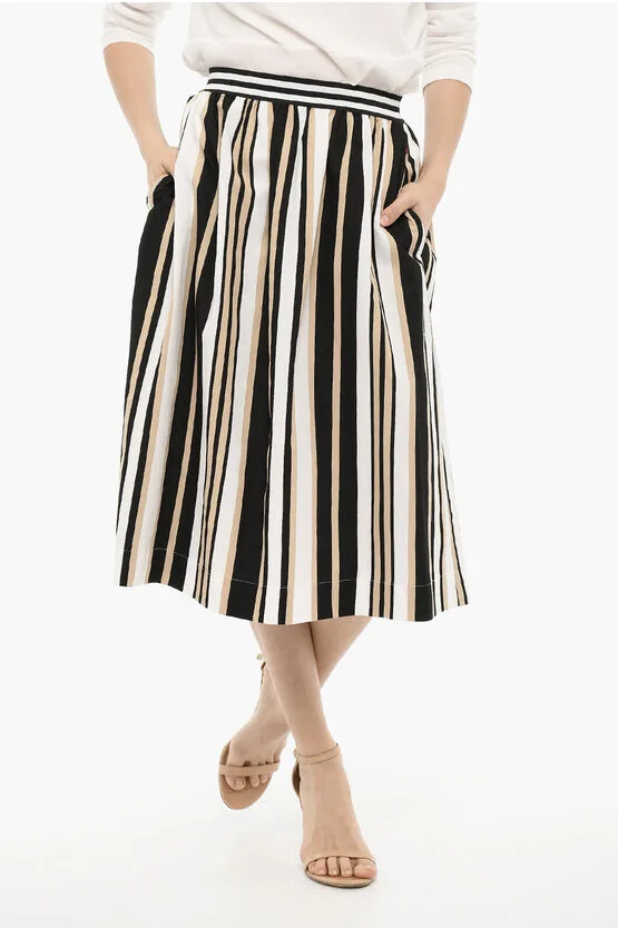 Uitlopende potloodstreep SCULLY longuetterok in beige, wit en zwart