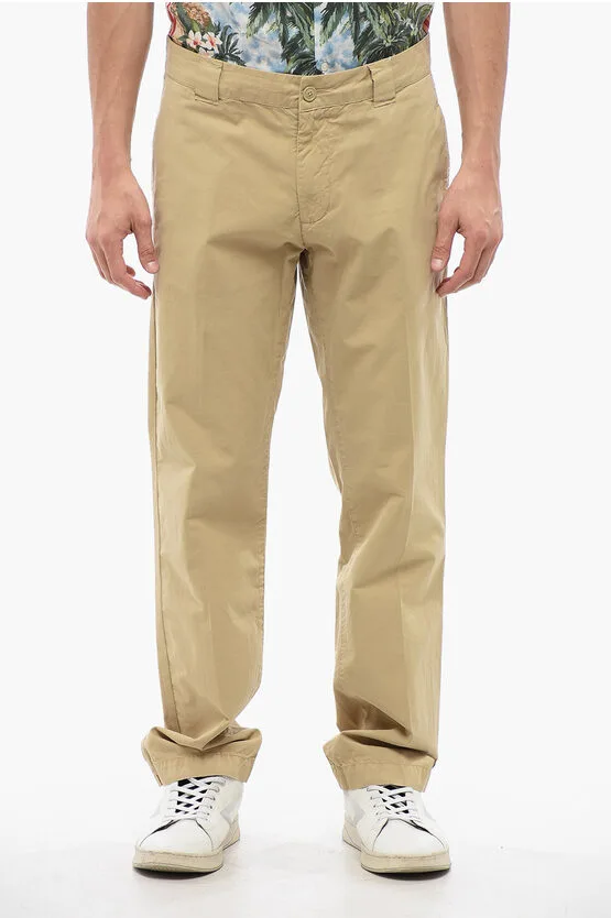 Katoenen MILITAIR Chino-broek met elastische tailleband in beige