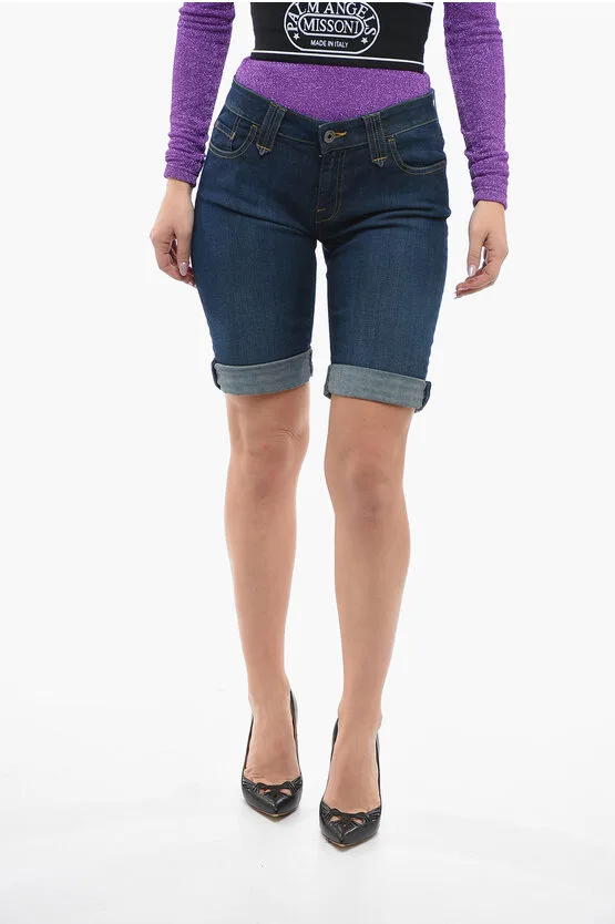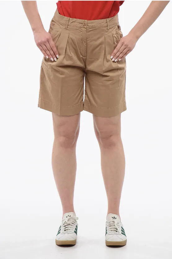 Dubbelgeplooide stretchkatoenen shorts met riemlussen in beige