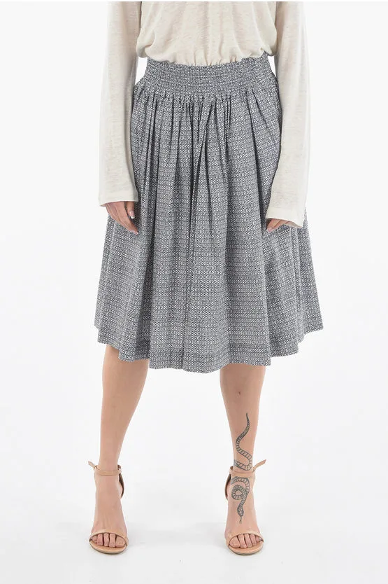 Popelin katoenen cirkelrok met diamantpuntmotief in blauw