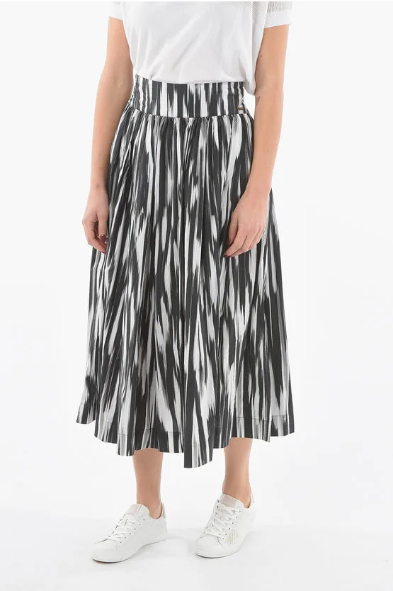 Popeline katoenen uitlopende rok met trekkoord in zwart en wit