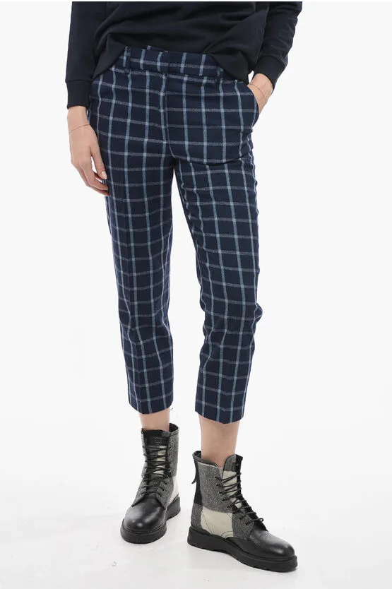 COMFORT-broek van wolmix met ruitjespatroon in blauw