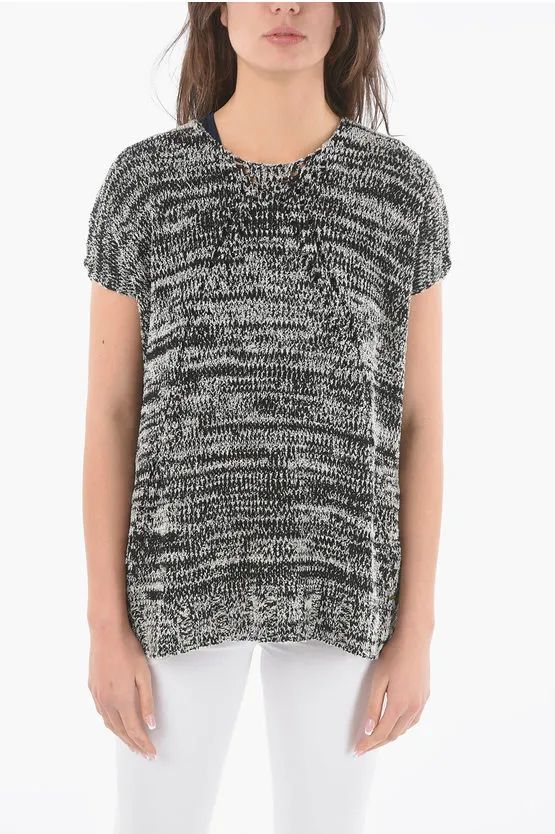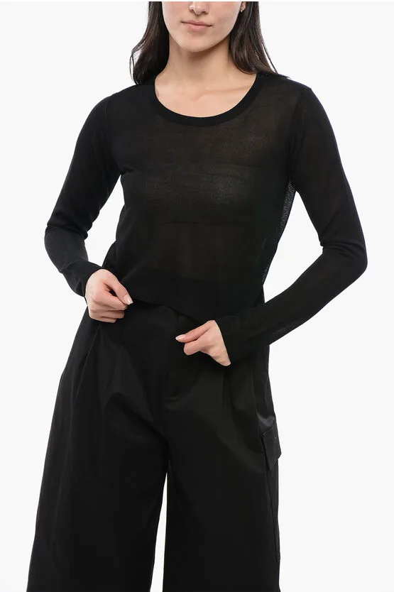 Cropped Fit Viscose Blend Trui met Ronde Hals in Zwart