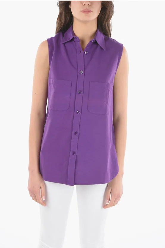 Mouwloos maxi-shirt van katoen met dubbele borstzakken in violet