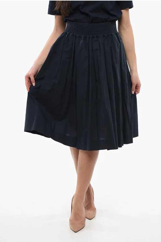 Popeline katoenen uitlopende midi-rok in blauw