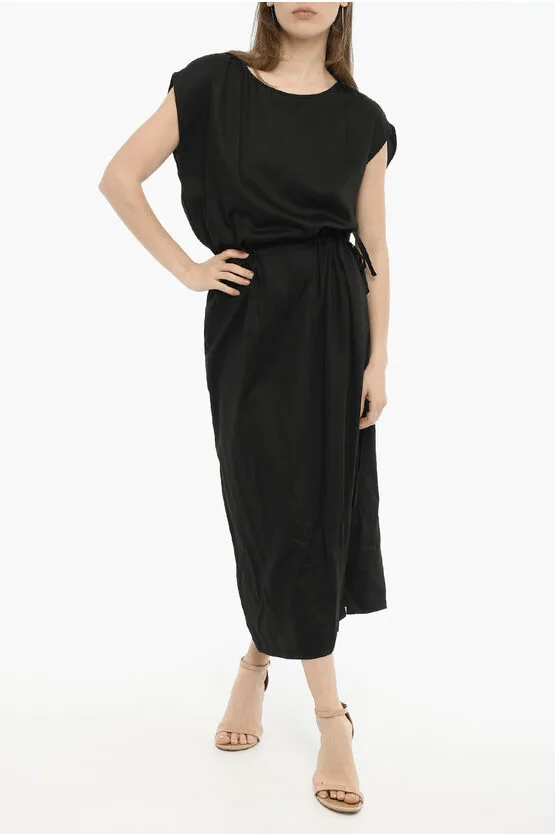 Twill effen maxi-jurk in zwart