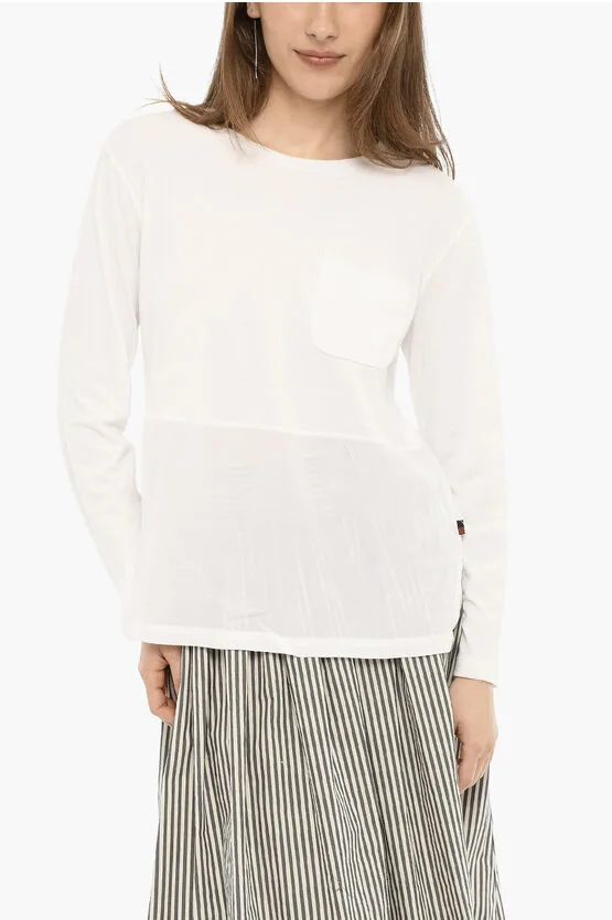 T-shirt met ronde hals, borstzak en zijsplit in wit