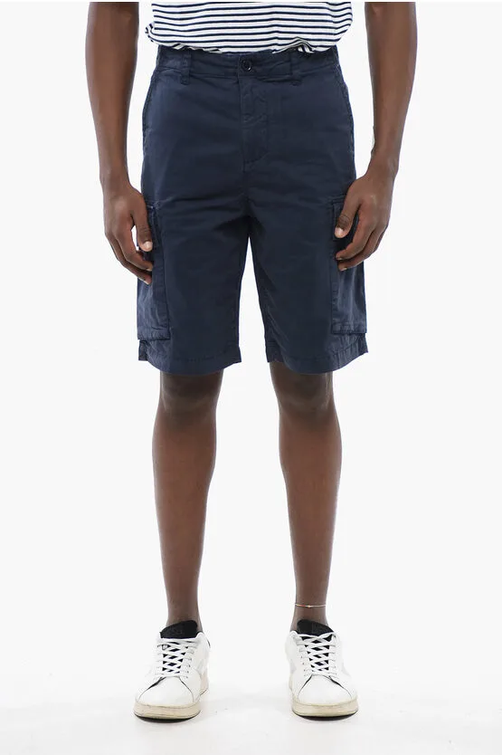 Katoenen cargoshorts met riemlussen in blauw