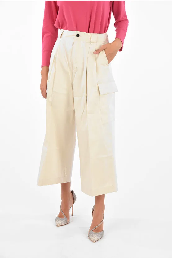 Dubbelgeplooide utility-broek met wijde pijpen in beige