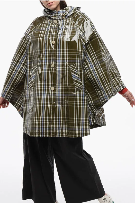 Geruite nylon HAWTHORN-cape met capuchon in militairgroen