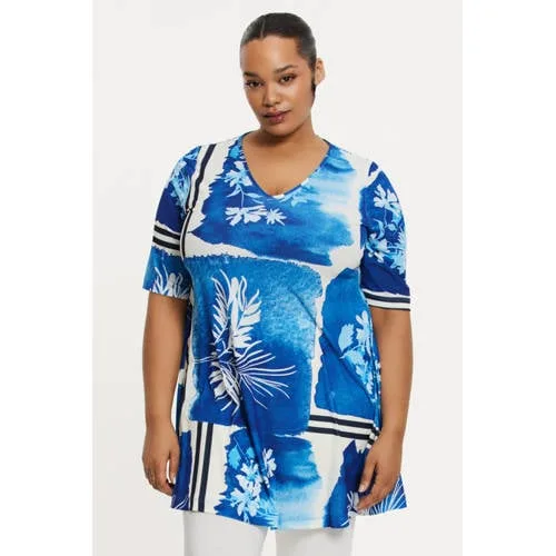 YOEK Blousejurk ‘Flowly’ geel / lichtlila / oranje / wit