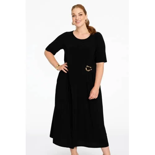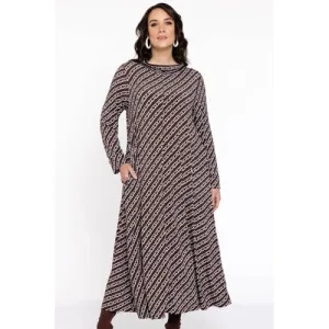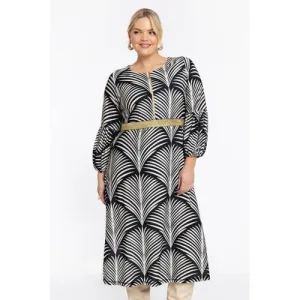 YOEK maxi jurk DOLCE met all over print bruin/ wit