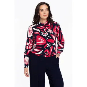 YOEK blouse DOLCE met all over print rood/ donkerblauw/ wit