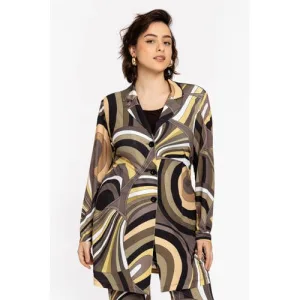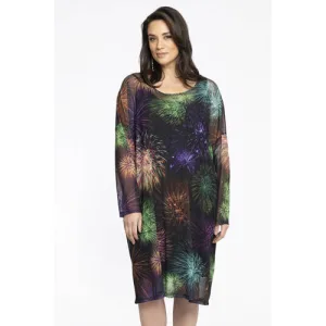 YOEK PORTRAITS jurk FLOWLY met grafische print wit/paars/geel