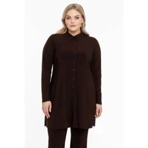 YOEK top DOLCE van travelstof bruin