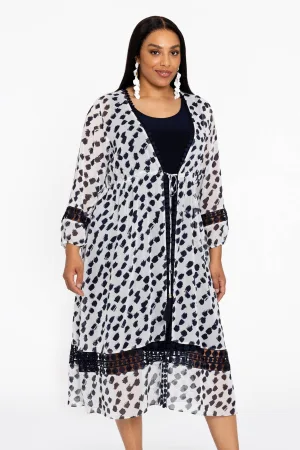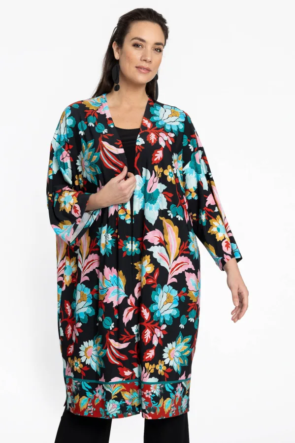 YOEK kimono met all over print zwart/blauw/oranje