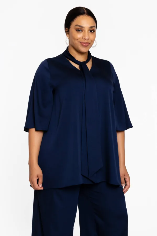 YOEK top DOLCE van travelstof donkerblauw/groen/rood