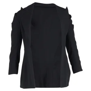 Yohji Yamamoto blazer met enkele rij knopen, gedetailleerde mouwen en details in zwarte wol.
