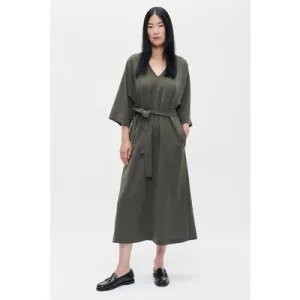ZENGGI Japanese Crepe V-neck Dress Green Kelp