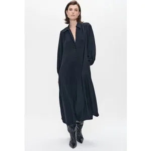 ZENGGI Technosilk Gathered Dress Ink Blue