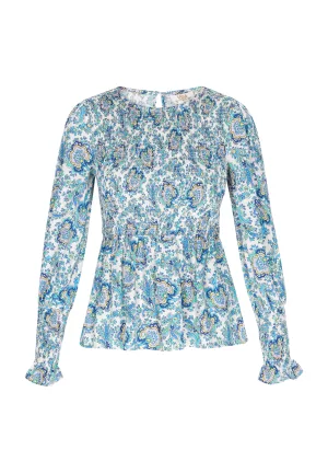Cream Blouse ‘Tiah’ opaal / hemelsblauw / pasteelgeel / groen