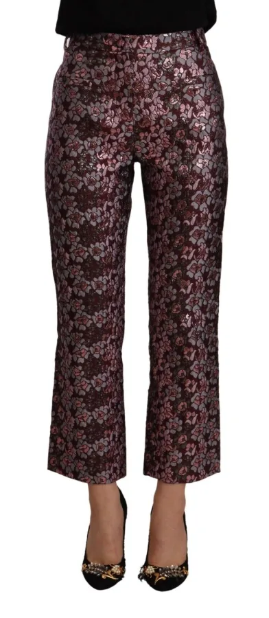 House of Holland Women’s Multicolor Floral Jacquard Flared Cropped Pants