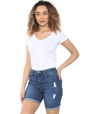 Enzo | Dames Ripped Denim Shorts – middenblauw