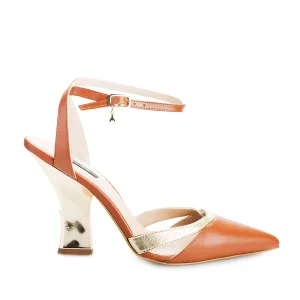 Stuart Weitzman enkelsandaal met bandjes in gouden leer