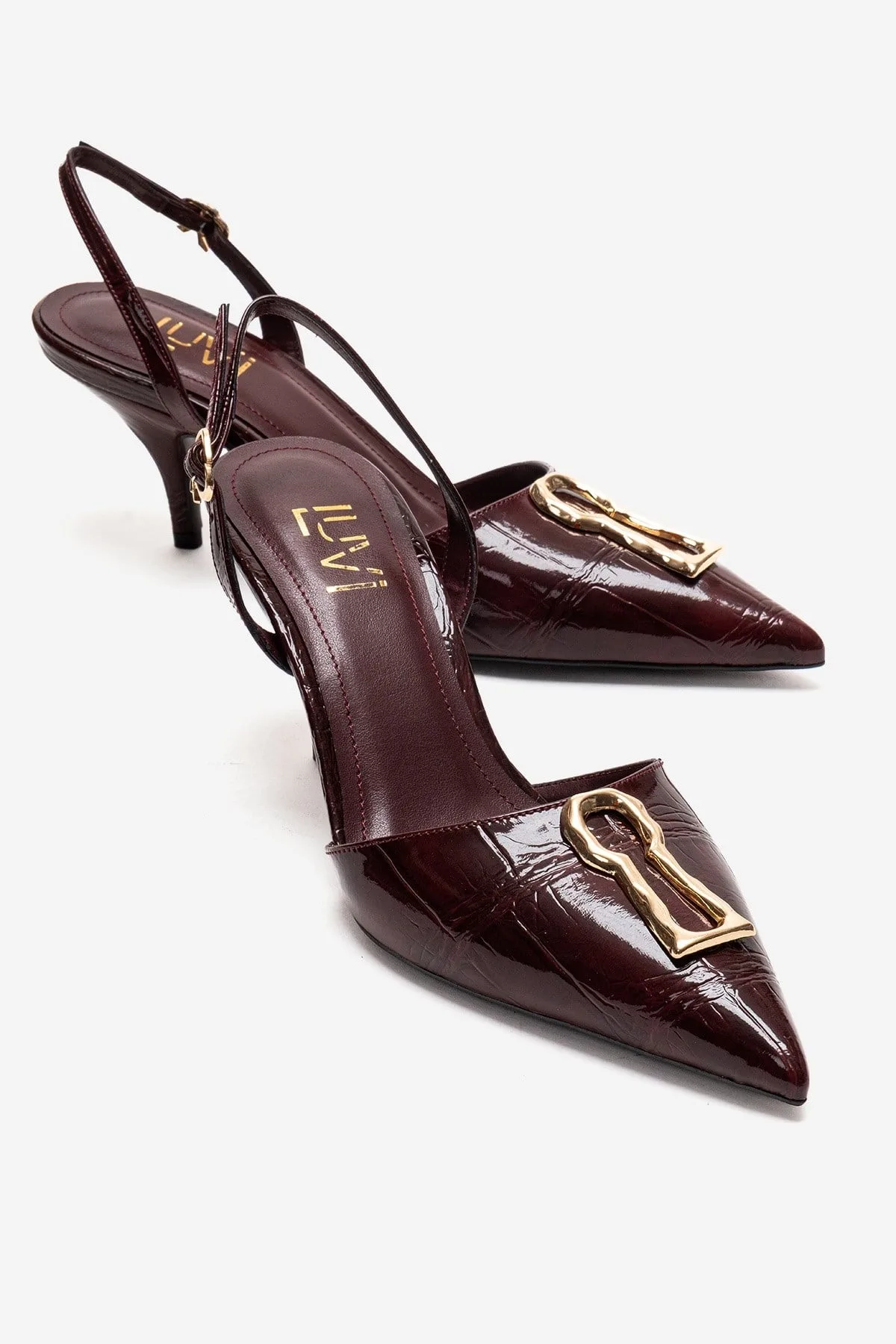 Giorgio Armani Cut-Out Slingback Pumps in Zwart Leer