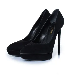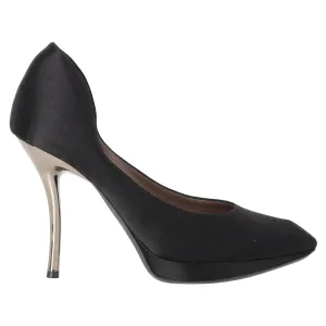Lanvin Pumps met spitse neus en plateauzool in zwart satijn