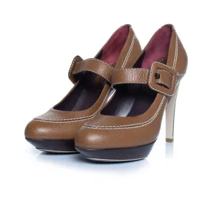 Celine, Leren platformpomp met band in bruin