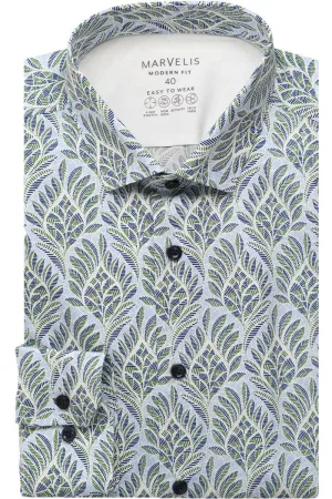 Marvelis Performance Modern Fit Overhemd blauw/groen/wit, Motief